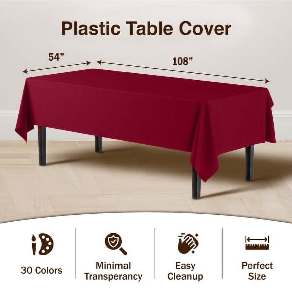 Exquisite 6-Pack Premium Plastic Tablecloth 54in. x 108in. Rectangle Plastic Table Cover