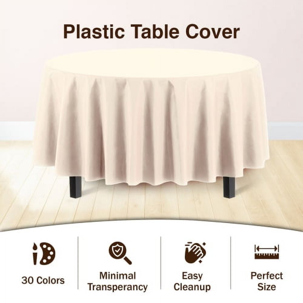 Exquisite Disposable Round Plastic Tablecloths – 6 Pack 84" Disposable Table Cloths – Indoor/Outdoor Party Tablecloth – Round Plastic Table Cover for Events & Party Supplies