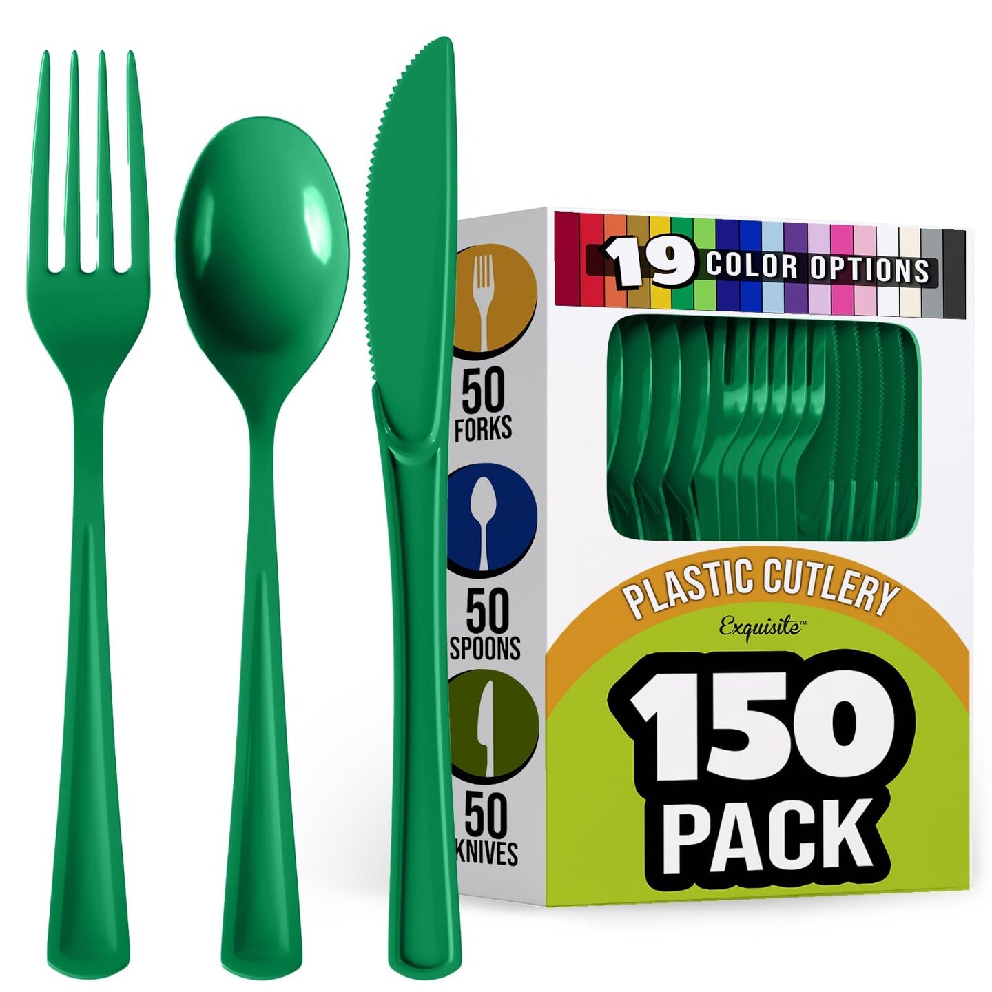 Exquisite Polished Plastic Silverware – 150 Pcs Heavy Duty Cutlery Set – 50 Each of Forks, Knives & Spoons – Disposable Utensil Set for Parties, Events & Catering – Flatware Set by Party Solids