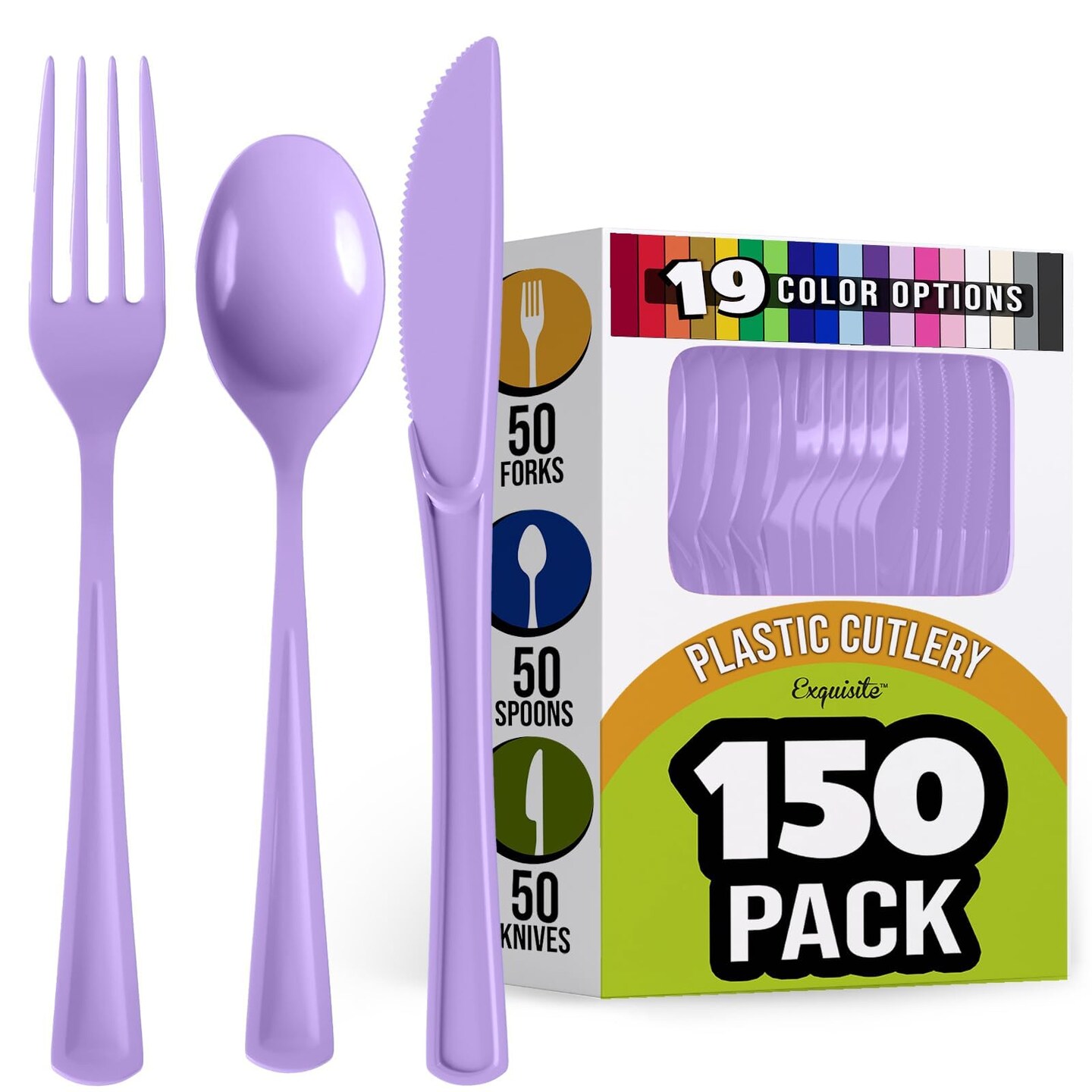 Exquisite Polished Plastic Silverware – 150 Pcs Heavy Duty Cutlery Set – 50 Each of Forks, Knives & Spoons – Disposable Utensil Set for Parties, Events & Catering – Flatware Set by Party Solids