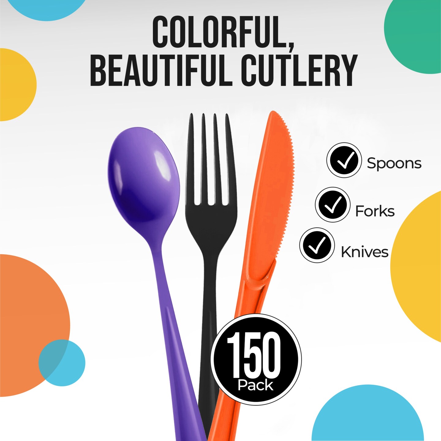 Exquisite Polished Plastic Silverware – 150 Pcs Heavy Duty Cutlery Set – 50 Each of Forks, Knives & Spoons – Disposable Utensil Set for Parties, Events & Catering – Flatware Set by Party Solids