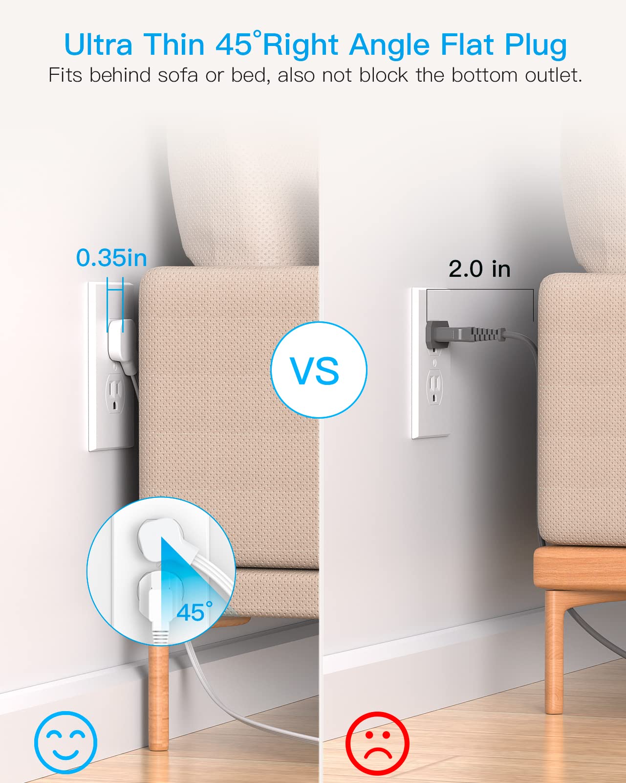 Extension Cord 10 Ft, Ultra Thin Flat Plug Power Strip Surge Protector with 8 Outlets 4 USB Ports (2 USB C), HANYCONY Outlet Extender Desk Charging Station for Home Office Dorm Room Essentials