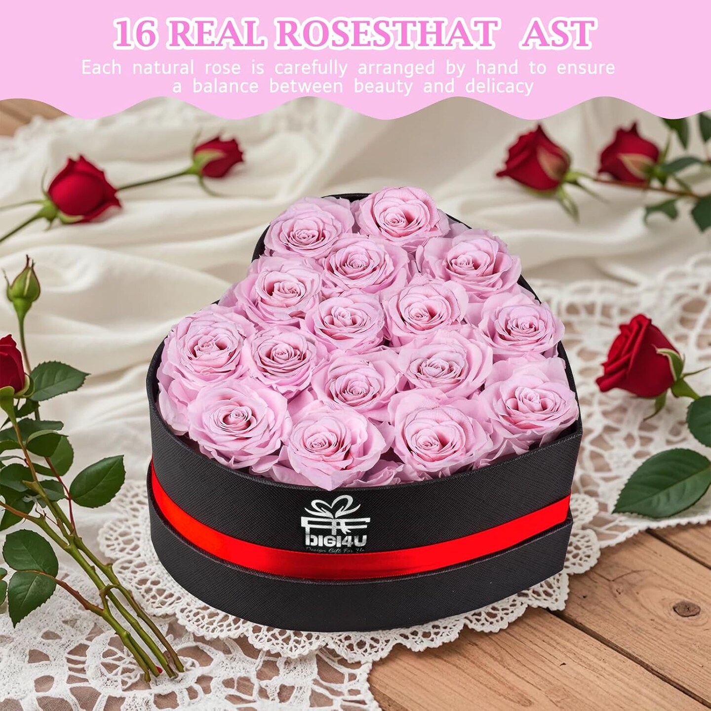 Extra Large 16 Preserved Roses Forever Flower Heart Shape Box