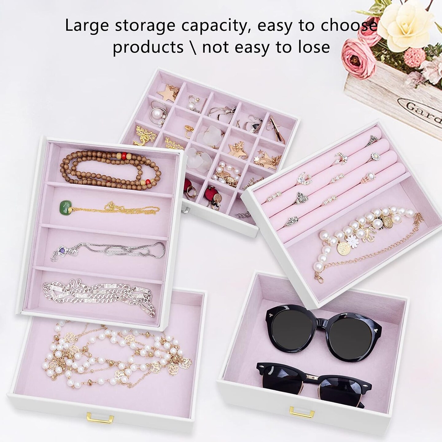 Extra Large 6-Tier Jewelry Box Organizer with Mirror, 5 Drawers Leather Jewelry Storage Case for Women Girls Ring Necklace Earring Bracelet White