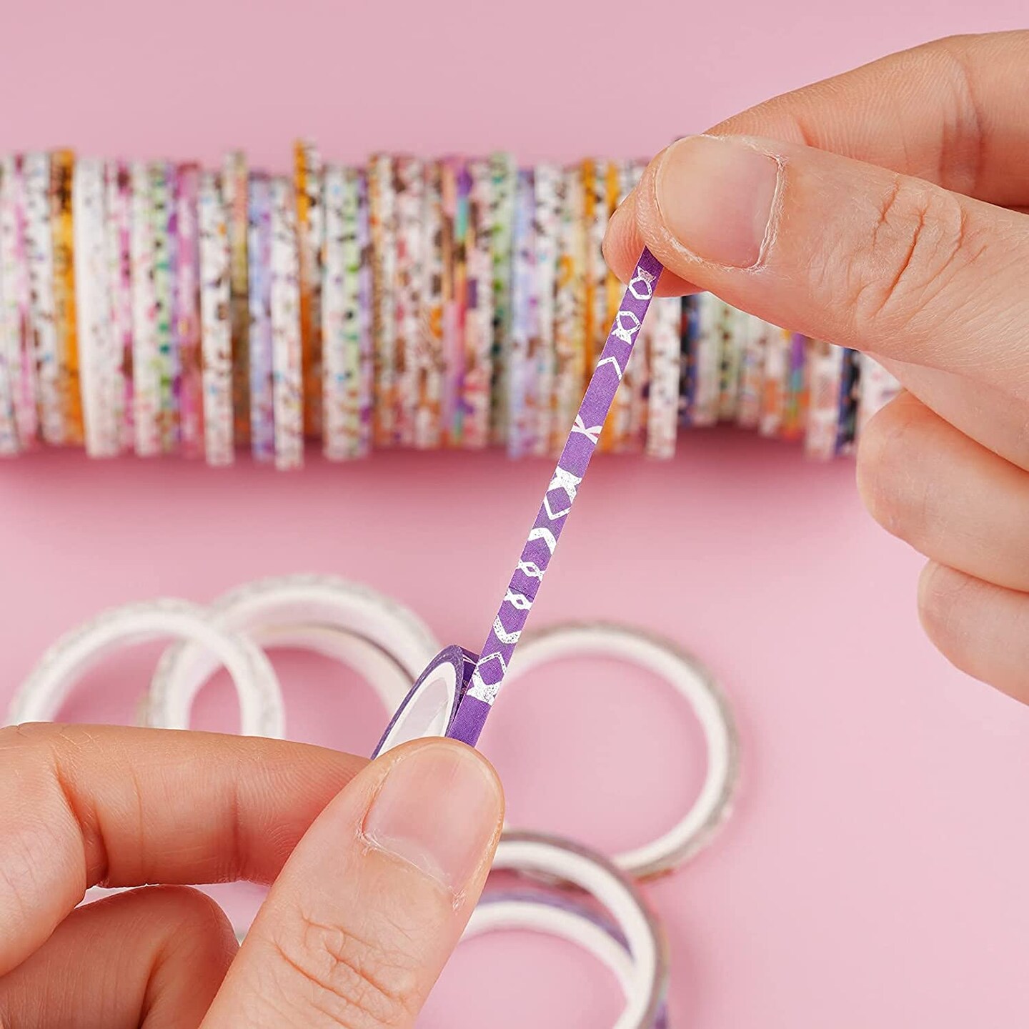 Extra Slim Washi Tape Set – 80+ Rolls Super Skinny Decorative Masking Tape with Random Patterns & Gold Foil Detailing, Perfect for DIY Crafts, Journals & Gift Wrapping