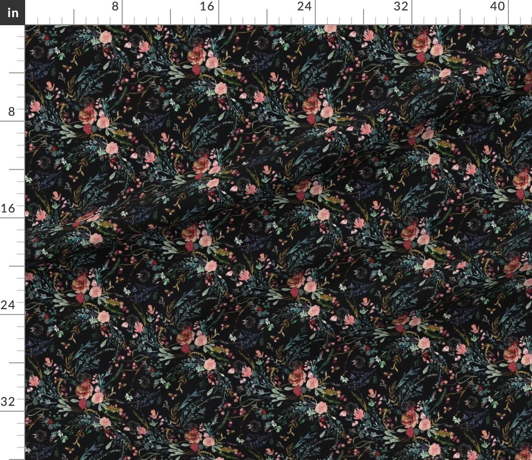 Fable Floral Black Flowers Garden Spring Rose Dark Fern Wildflowers Custom Printed Fabric by Spoonflower Various Fabrics by the Yard or Fat Quarter