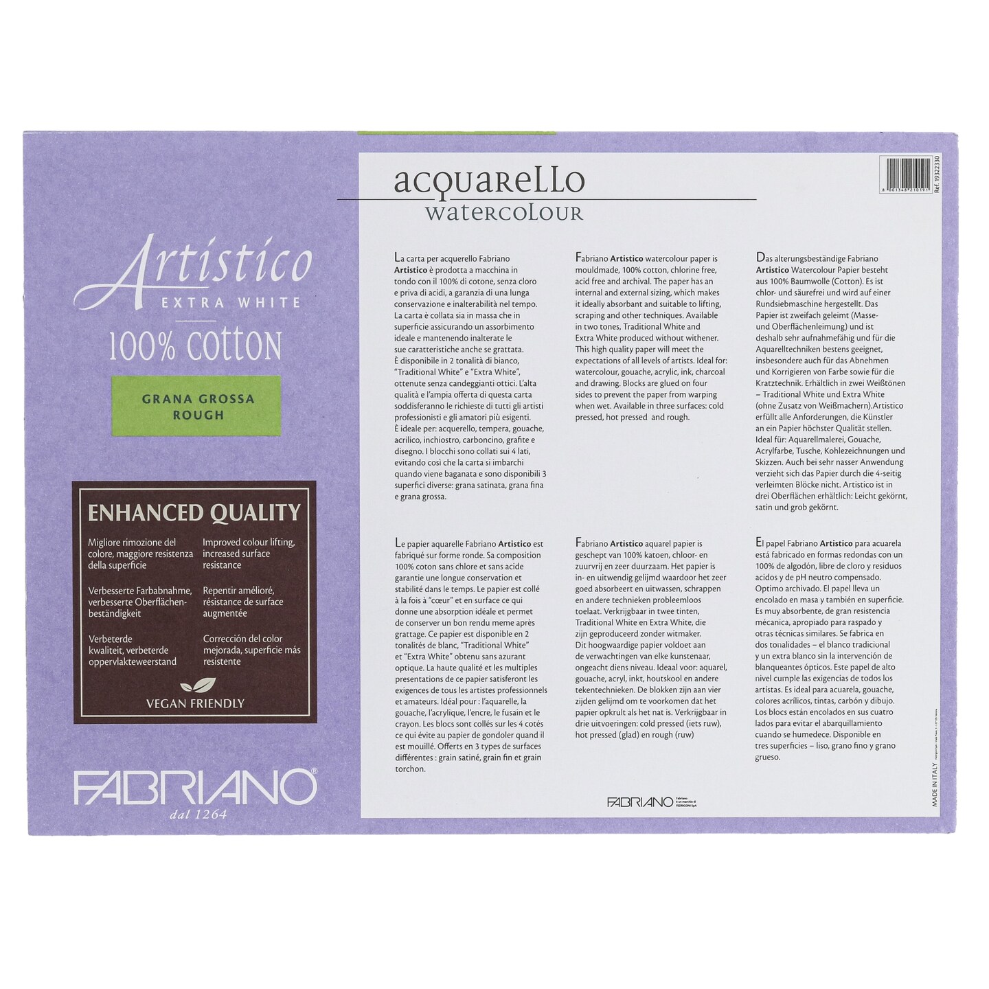 Fabriano Artistico Extra White Watercolor Block, 140 lb./300 gsm