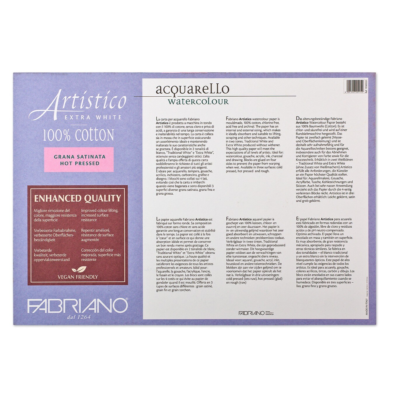 Fabriano Artistico Extra White Watercolor Block, 140 lb./300 gsm