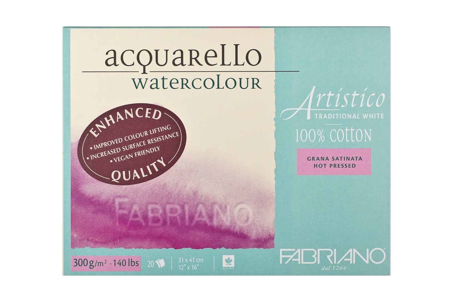 Fabriano Artistico Traditional White Watercolor Block, 140 lb./300 gsm