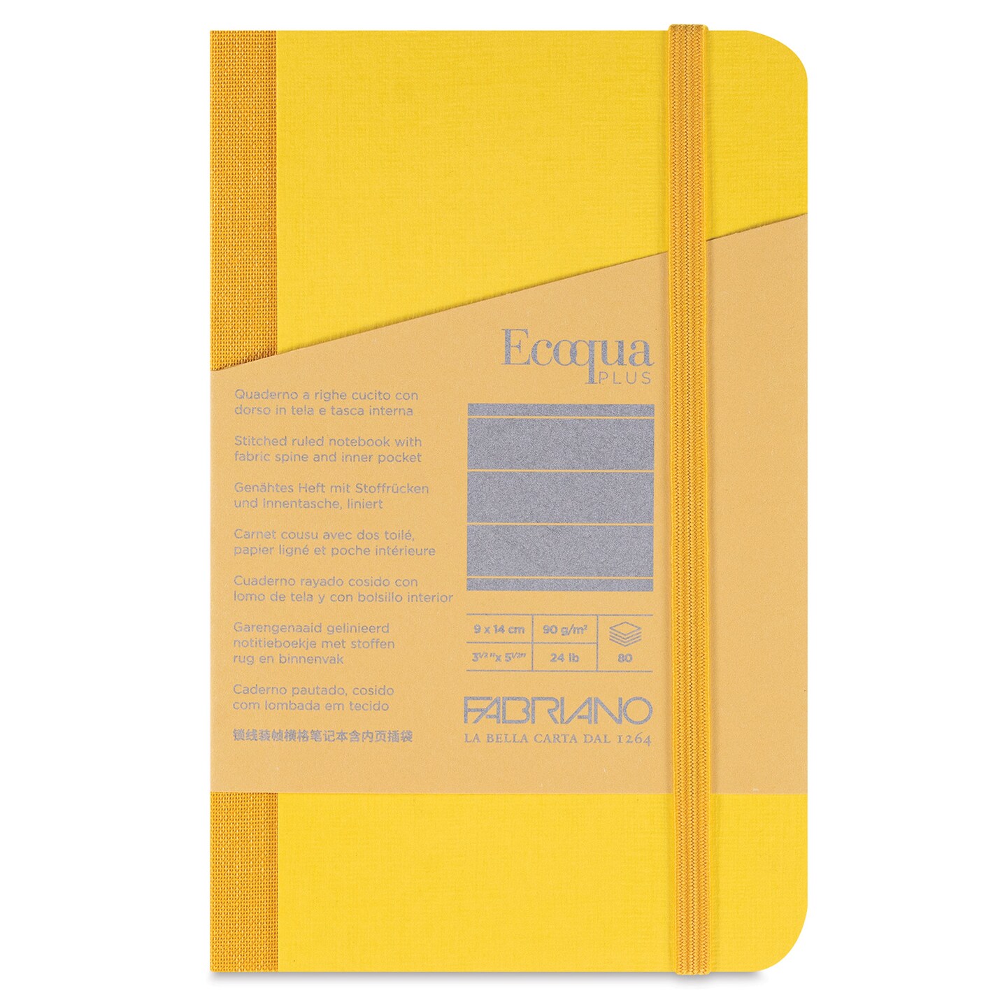 Fabriano Ecoqua Plus Fabric-Bound Notebook - Yellow, 3-1/2" x 5-1/2", Lined
