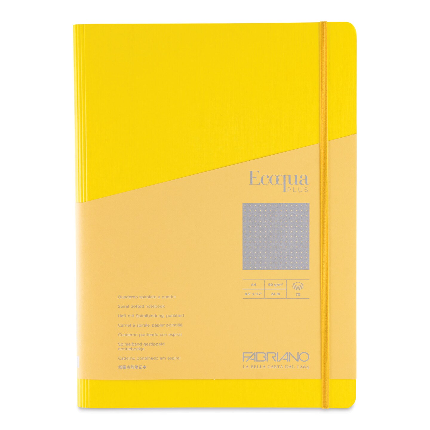 Fabriano Ecoqua Plus Hidden Spiral-Bound Notebook - Yellow, 11-7/10" x 8-1/4", Dot Grid