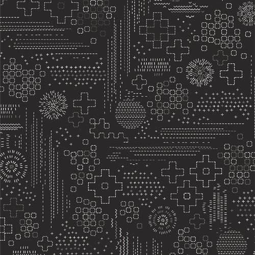Fabric Art Gallery InkPerfect Char Sashiko Craft by the Quarter Yard INK21911