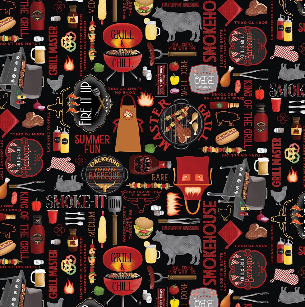 Fabric Benartex Black Backyard BBQ Hot Stuff by the Quarter Yard 15091-12