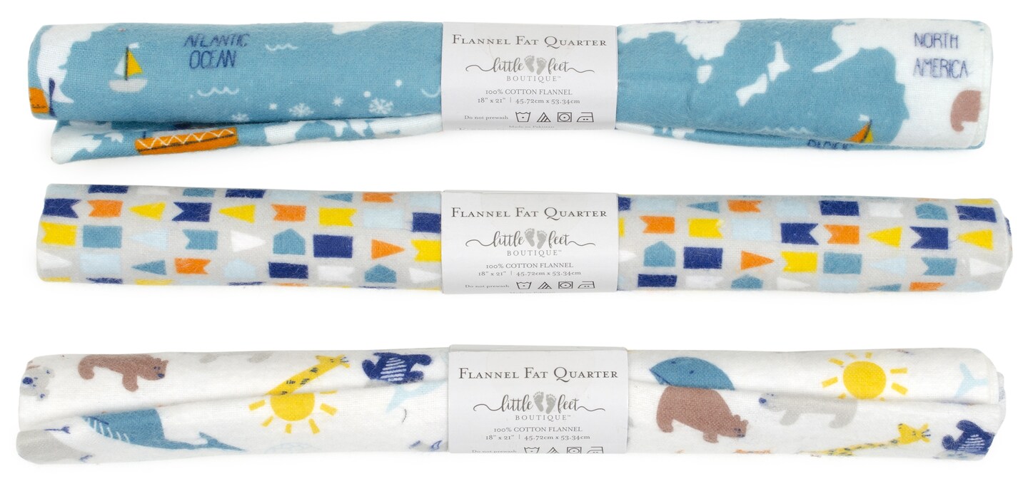Fabric Editions Little Feet Flannel Assortment 18"X21" PDQ-11 Each Of 3 Designs - Adventure