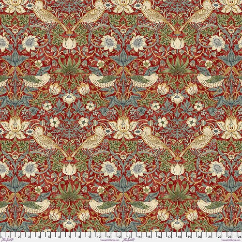 Fabric FreeSpirit Morris & Co. Red Strawberry Thief by the Quarter Yard PWWM001.REDXX
