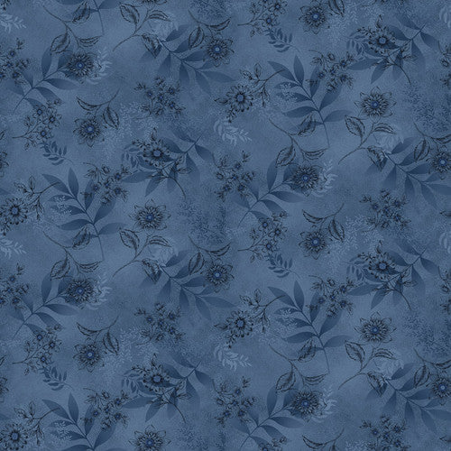 Fabric Henry Glass Blue Large Botanical Tonal Flossie's Flowers by the Quarter Yard 3369-77