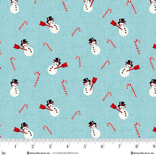 Fabric Henry Glass Blue Tossed Small Snowmen Frosty and Forest Friends by the Quarter Yard 2048-11