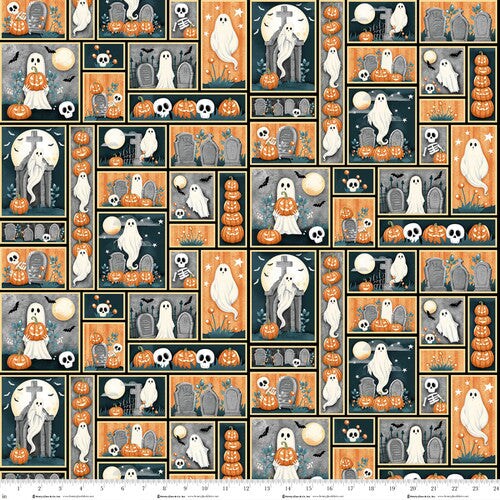 Fabric Henry Glass Glow in the Dark Multi Ghost Patchwork by the Quarter Yard Q2021G-39