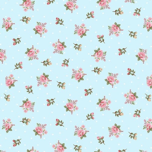 Fabric Henry Glass Light Blue Small Nosegay Victorian Garden by the Quarter Yard 3412-17