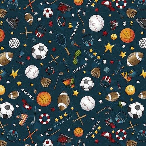 Fabric Henry Glass Navy Sports Balls by the Quarter Yard Q-1436-78