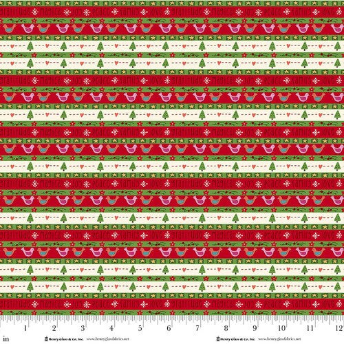 Fabric Henry Glass Red Folk Stripe Scandinavian Holiday by the Quarter Yard 3455-88