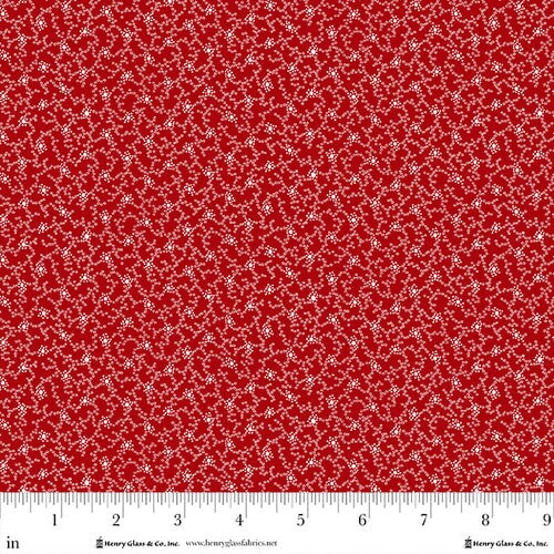 Fabric Henry Glass Red Rambling Dots Frosty and Forest Friends by the Quarter Yard 2046-88