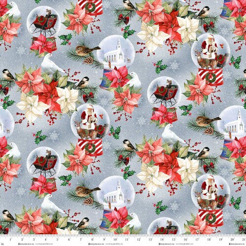 Fabric Henry Glass Steel Blue Snow Globes Believe by the Quarter Yard Q-1877-17