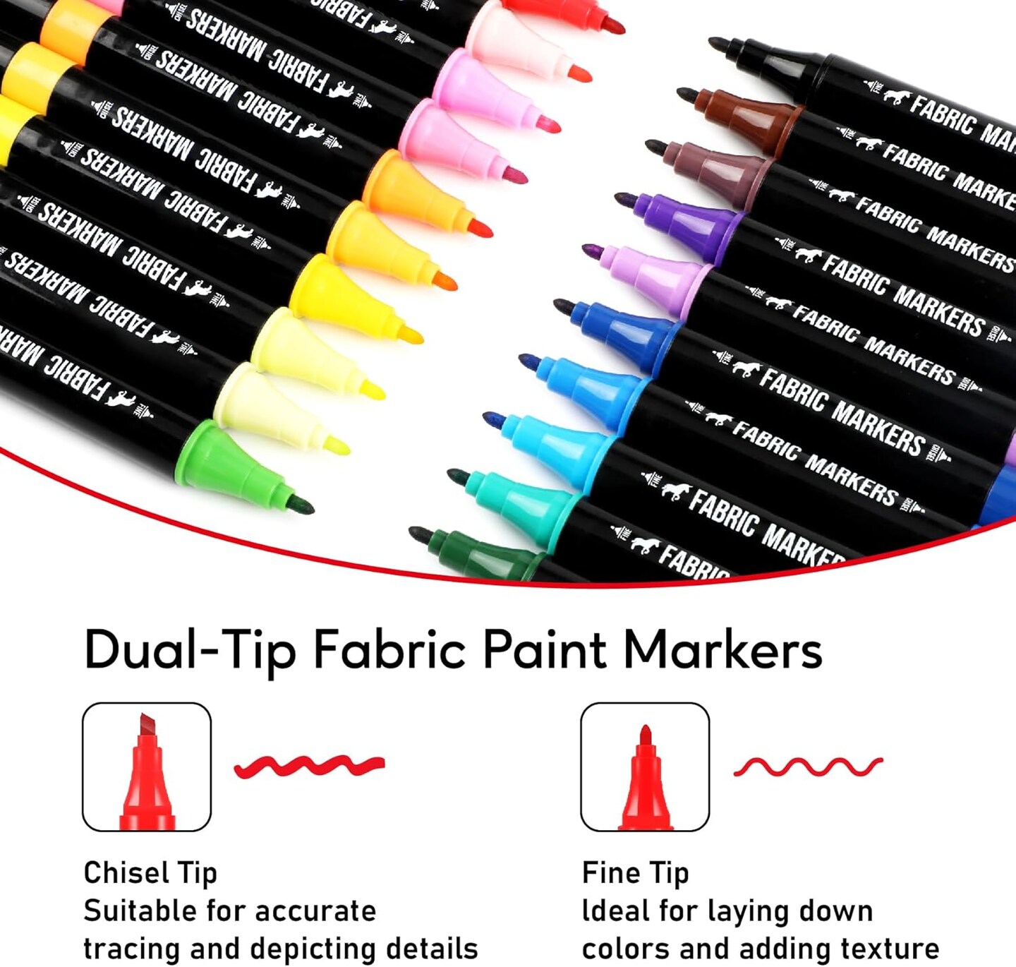 Fabric Markers Permanent for Clothes, 20 Colors Dual Tip with Fine and Chisel Tips Paint Pens for Clothing Canvas Tote Bags T-Shirt and Shoes, Non Toxic Ink for Kids and Adults