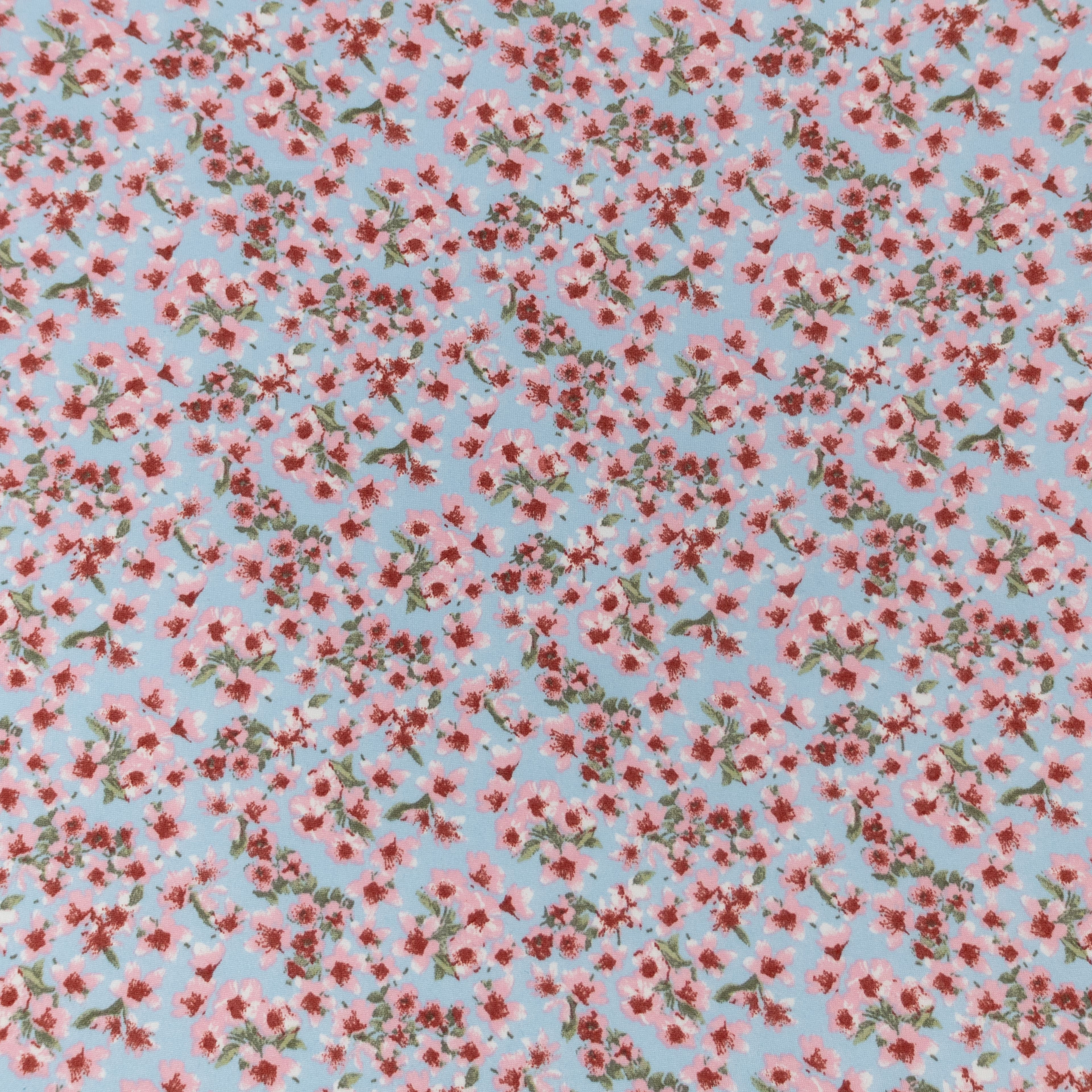 Fabric Merchants Pink Flowers on Blue Double Brushed Stretch Fabric