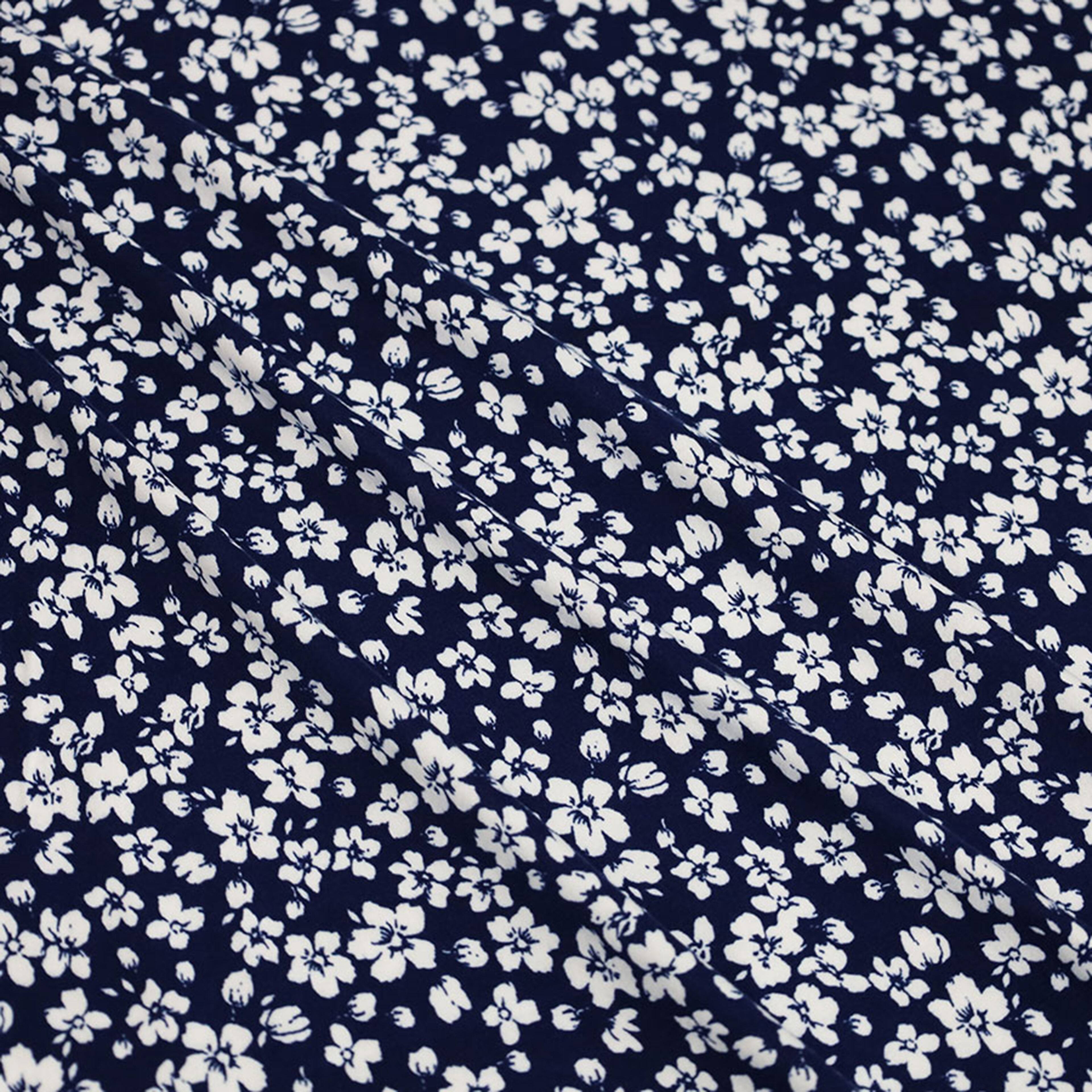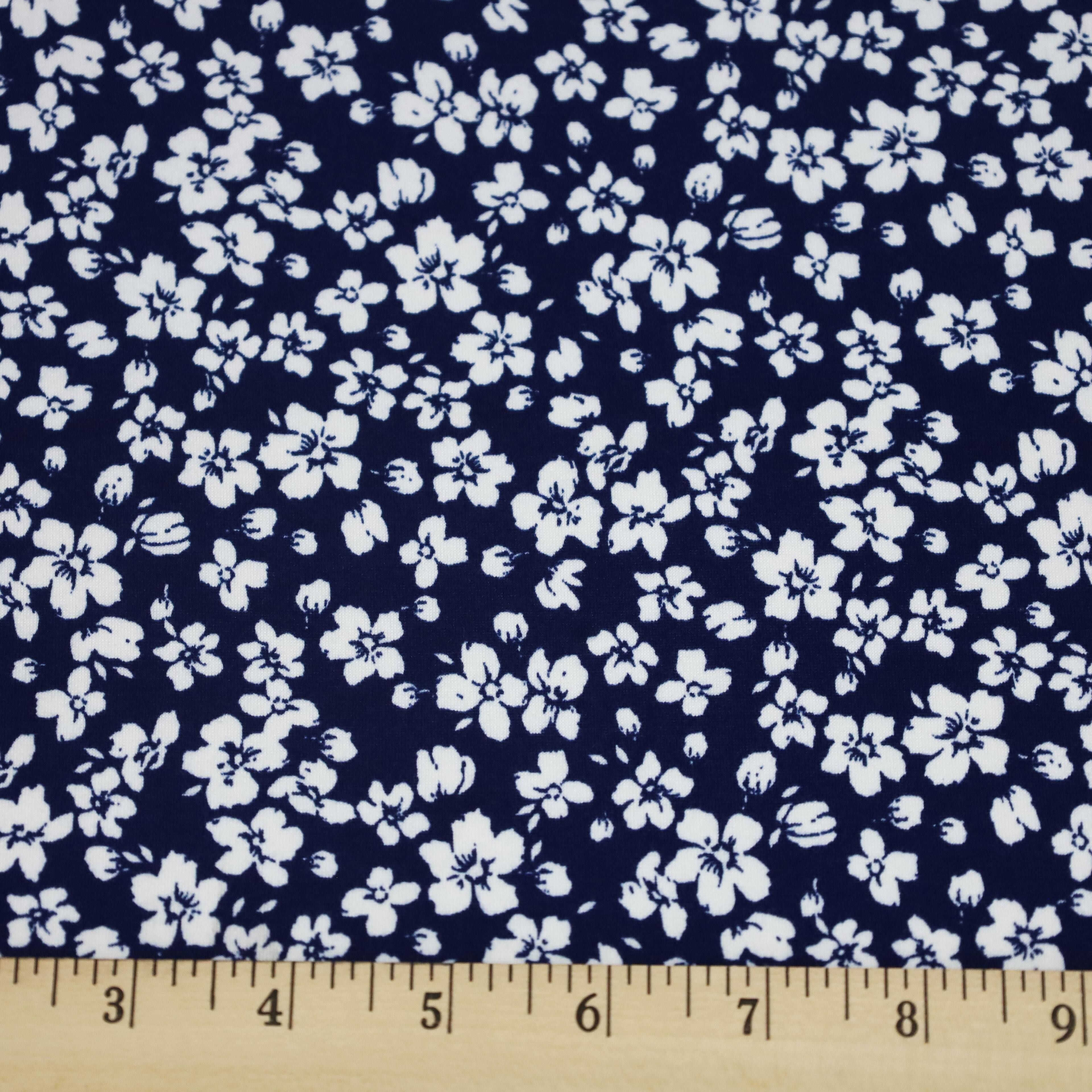 Fabric Merchants White Flowers on Navy Double Brushed Stretch Fabric