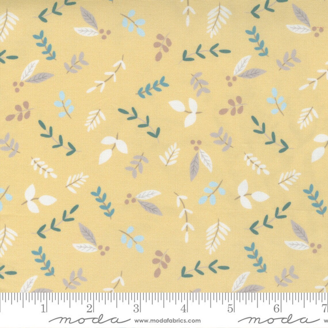 Fabric Moda Mustard Little Ducklings Leaves by the Quarter Yard 25102-16