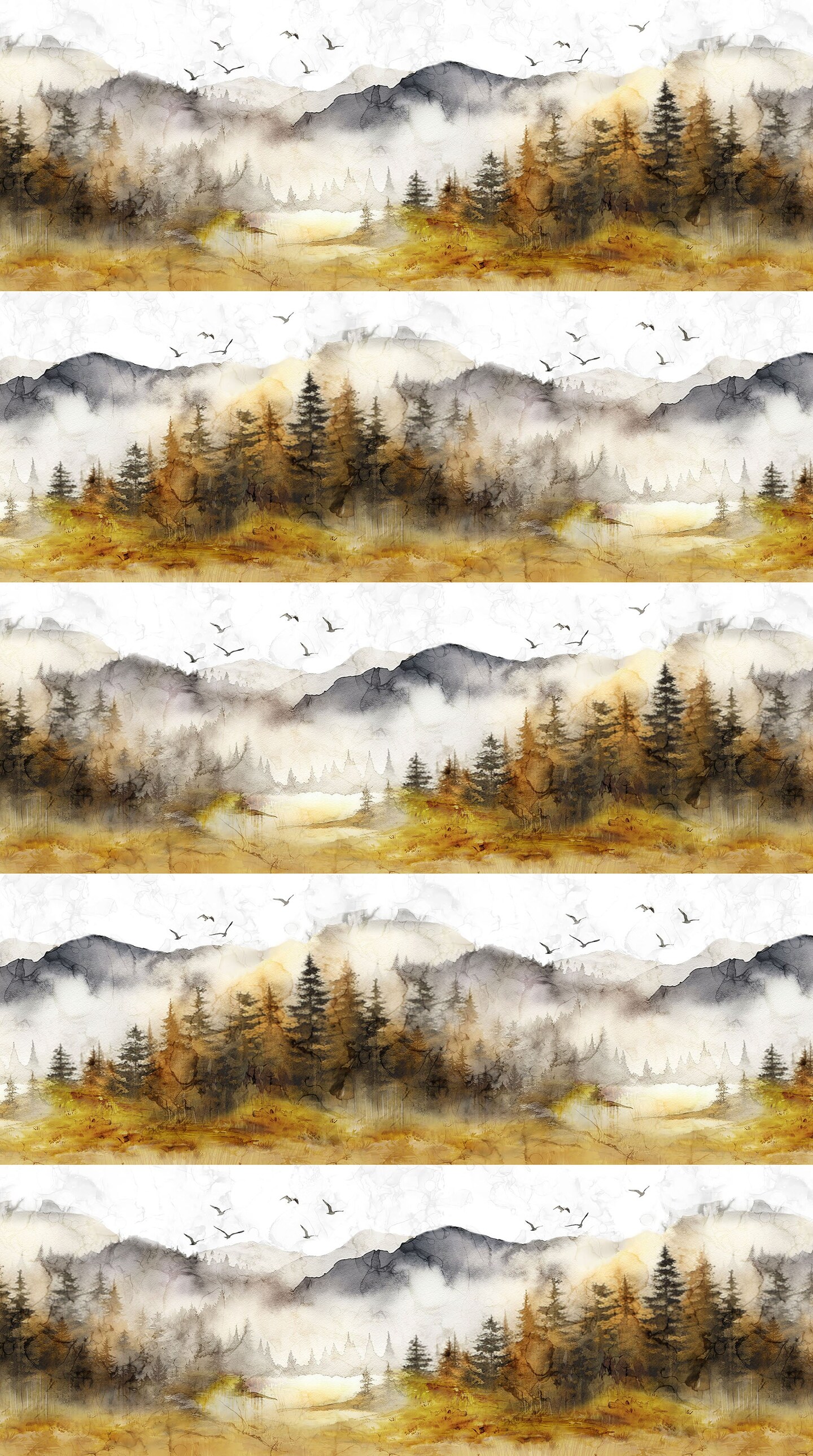 Fabric Northcott Ochre Multi Border Stripe Misty Morning by the Quarter Yard DP28648-54