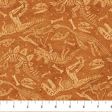 Fabric Northcott Rust Dino Bones Dino Roar by the Quarter Yard 28466-37