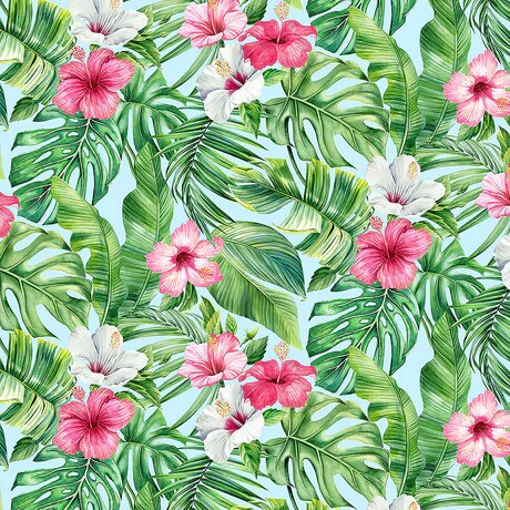 Fabric Northcott Sky Palm Hibiscus Coastal Breeze by the Quarter Yard DP28558-62