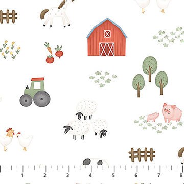 Fabric Northcott White Farm Animals Quack Quack Moo by the Quarter Yard 27815-10