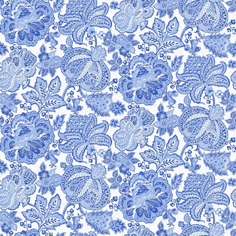 Fabric Northcott White/Blue Jacobean Trail Delft Dynasty by the Quarter Yard 28355-10