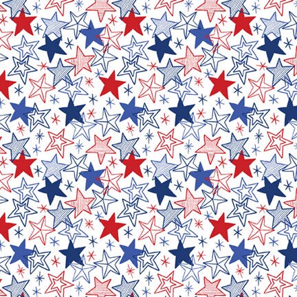 Fabric P & B Textiles White Sketchy Stars Patriotic Minis by the Quarter Yard PMIN6058-W