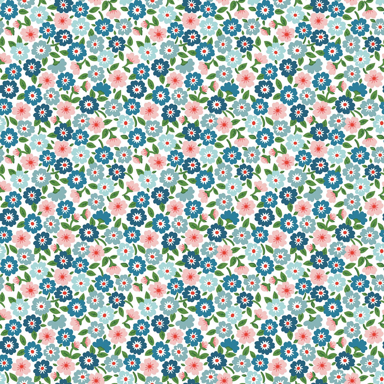 Fabric Poppie Cotton Blue Forget Me Nots Flower Market by the Quarter Yard FM25410