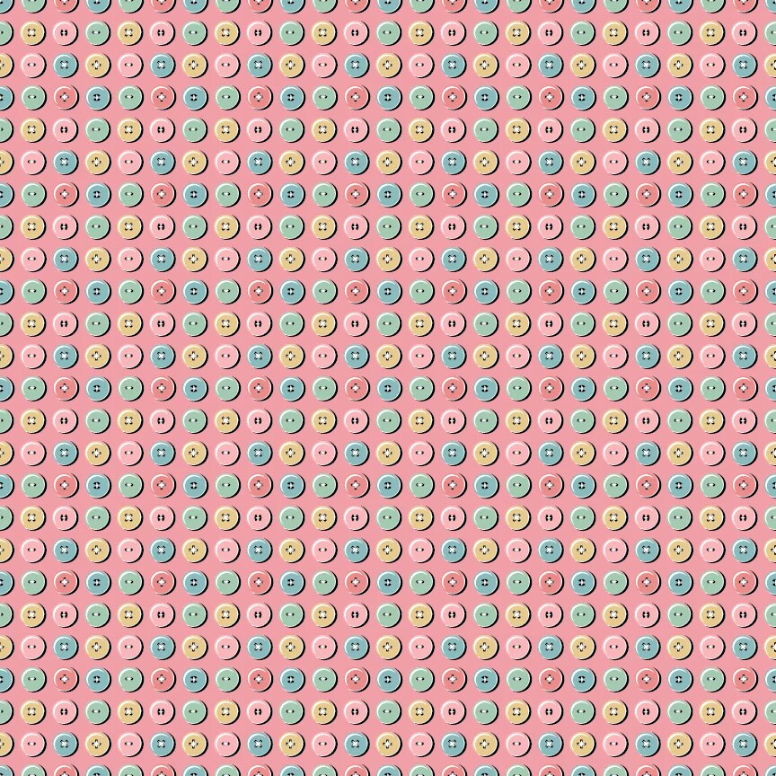 Fabric Poppie Cotton Pink Button Collection Granny's Sewing Room by the Quarter Yard GS25909