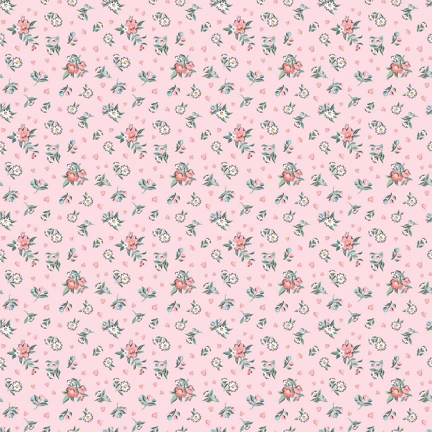 Fabric Poppie Cotton Pink Hearts & Posies Granny's Sewing Room by the Quarter Yard GS25918