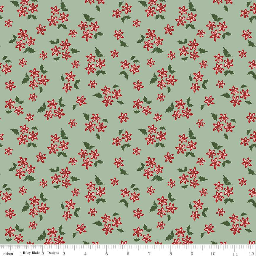 Fabric Riley Blake Barn Sage Floral Mistletoe & Holly by the Quarter Yard C16405-SAGE