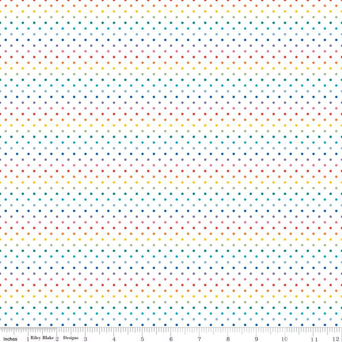 Fabric Riley Blake Basics Rainbow Swiss Dot on White by the Quarter Yard C660-RAINBOW
