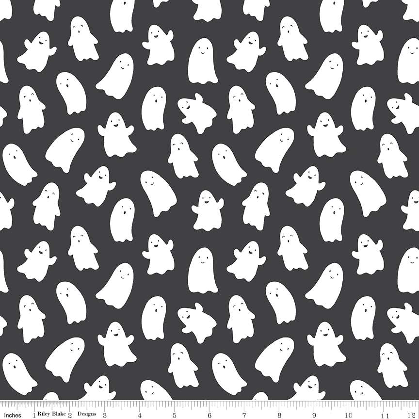 Fabric Riley Blake Charcoal Ghosts Hey Pumpkin by the Quarter Yard C16032-CHARCOAL