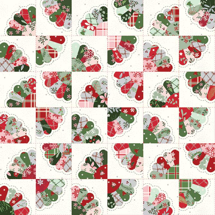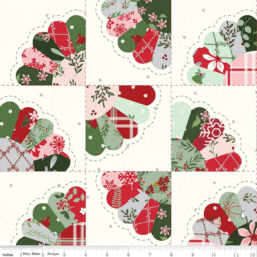 Fabric Riley Blake Cloud Dresden Fan Cheater Print Mistletoe & Holly by the Quarter Yard C16408-CLOUD