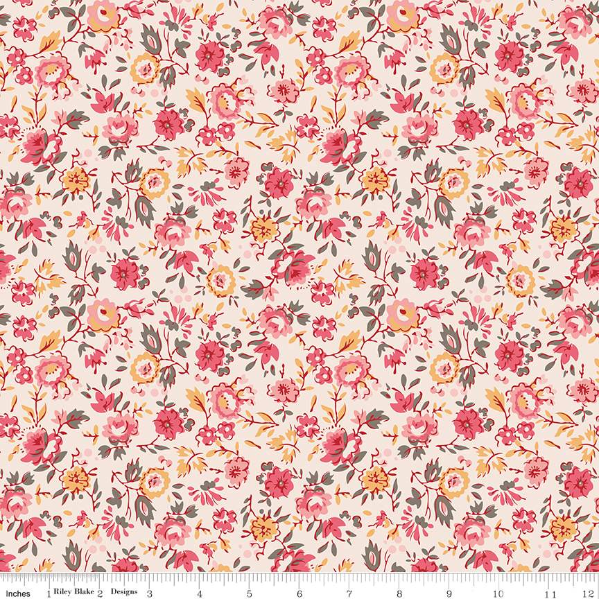 Fabric Riley Blake Coral Floral Piece & Plenty by the Quarter Yard C15871-CORAL