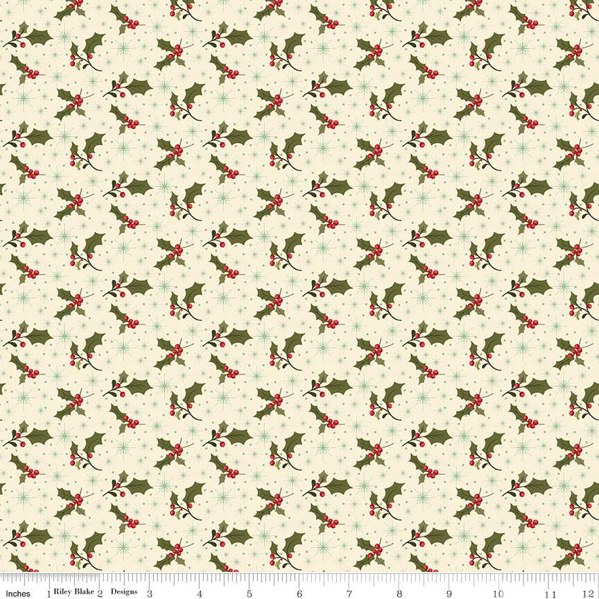 Fabric Riley Blake Eggnog Holly Glisten by the Quarter Yard C16224-EGGNOG