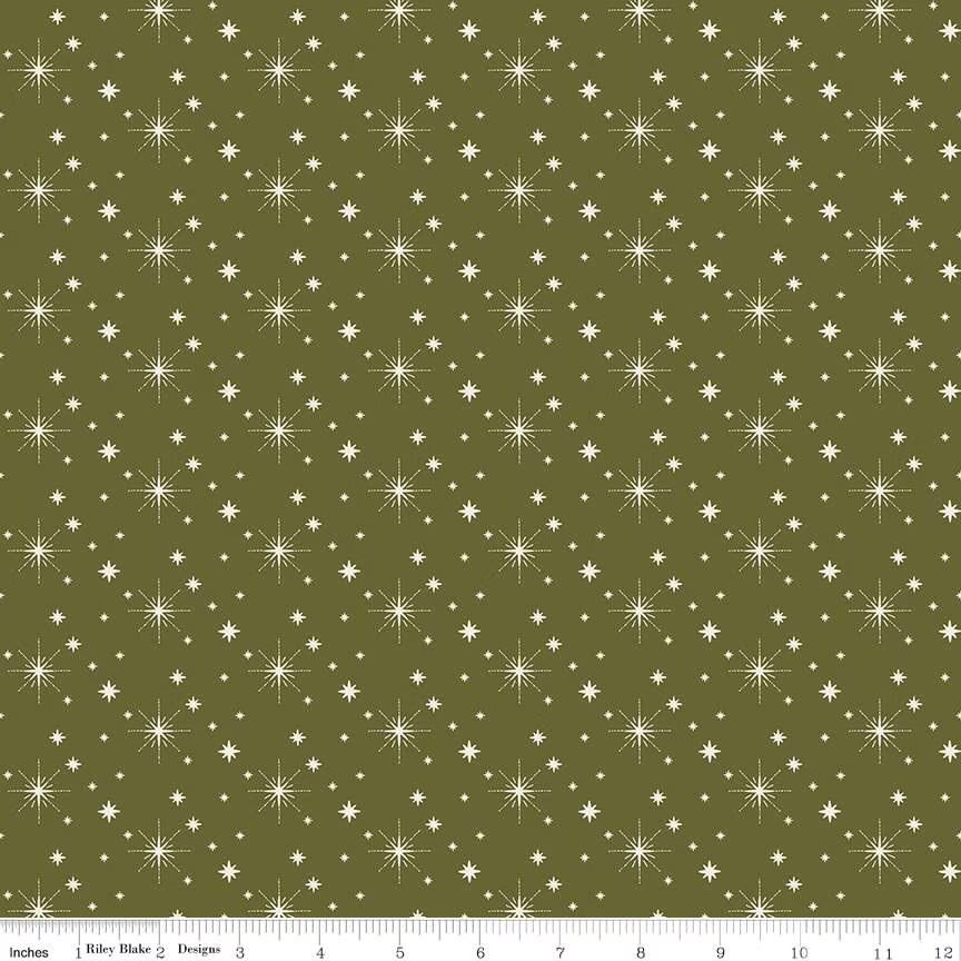 Fabric Riley Blake Green Stars Glisten by the Quarter Yard C16227-GREEN