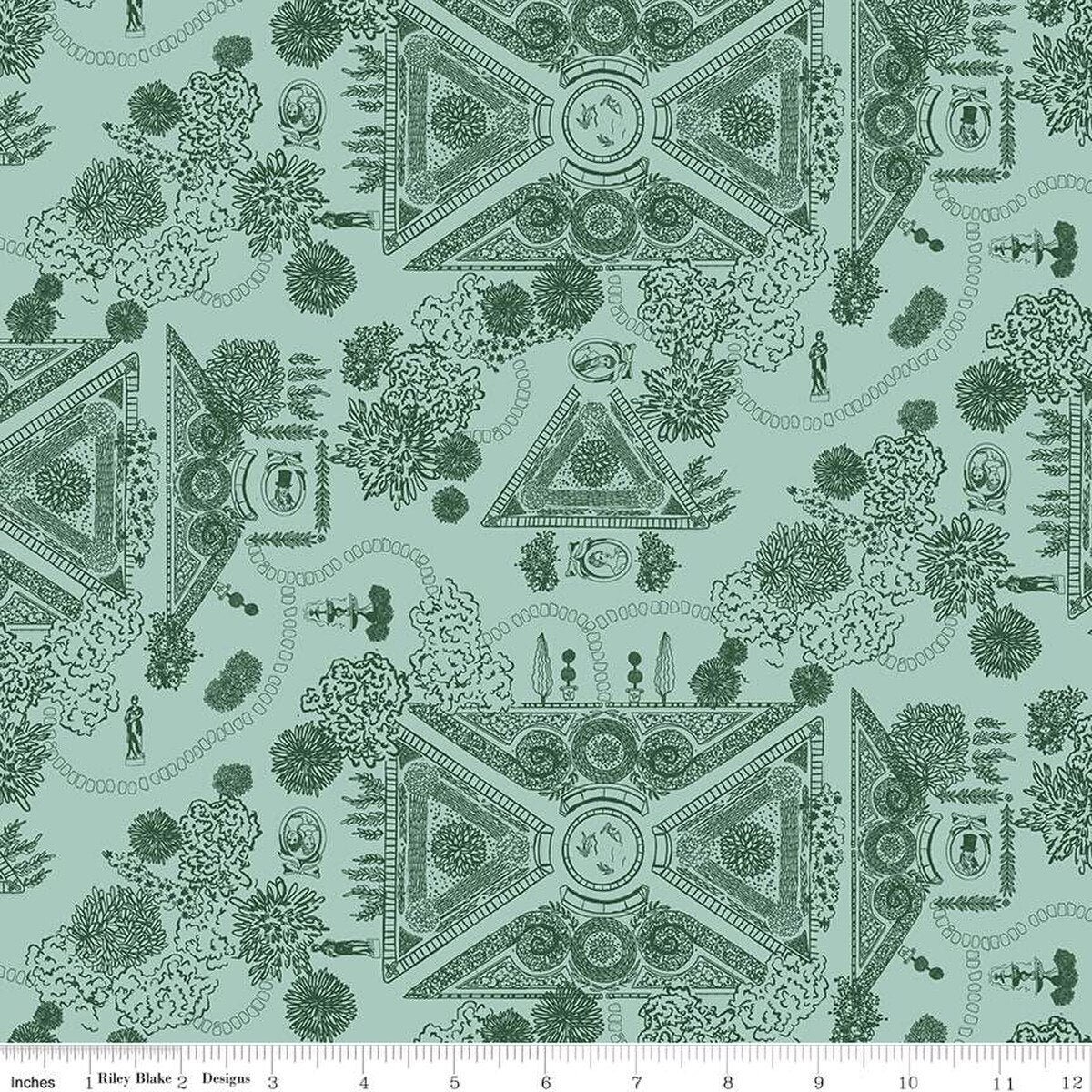 Fabric Riley Blake Mint Landscape Mansfield Park Jane Austen by the Quarter Yard C15205-MINT