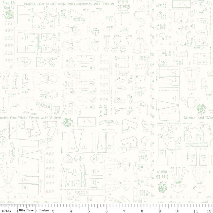 Fabric Riley Blake Mint Sewing Pattern Bee Backgrounds by the Quarter Yard C6382-MINT