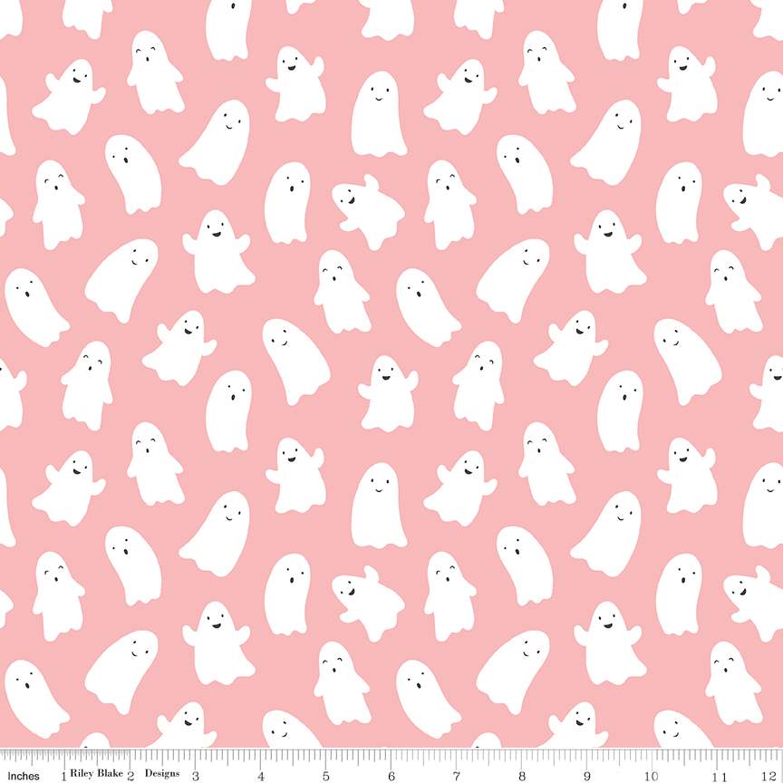 Fabric Riley Blake Pink Ghosts Hey Pumpkin by the Quarter Yard C16032-PINK